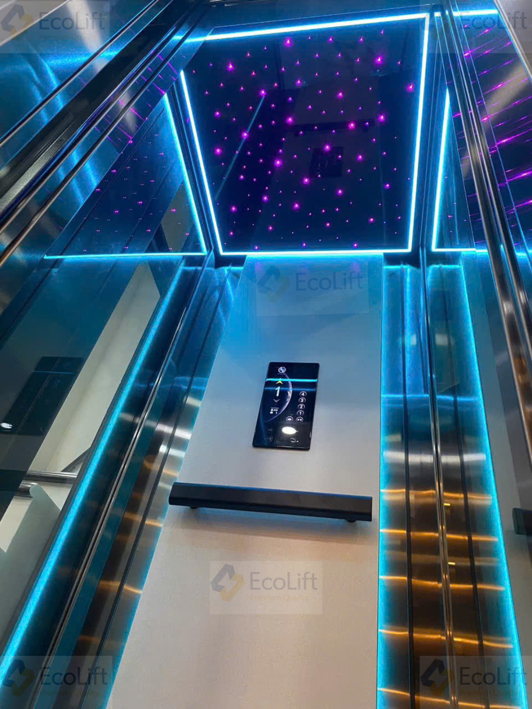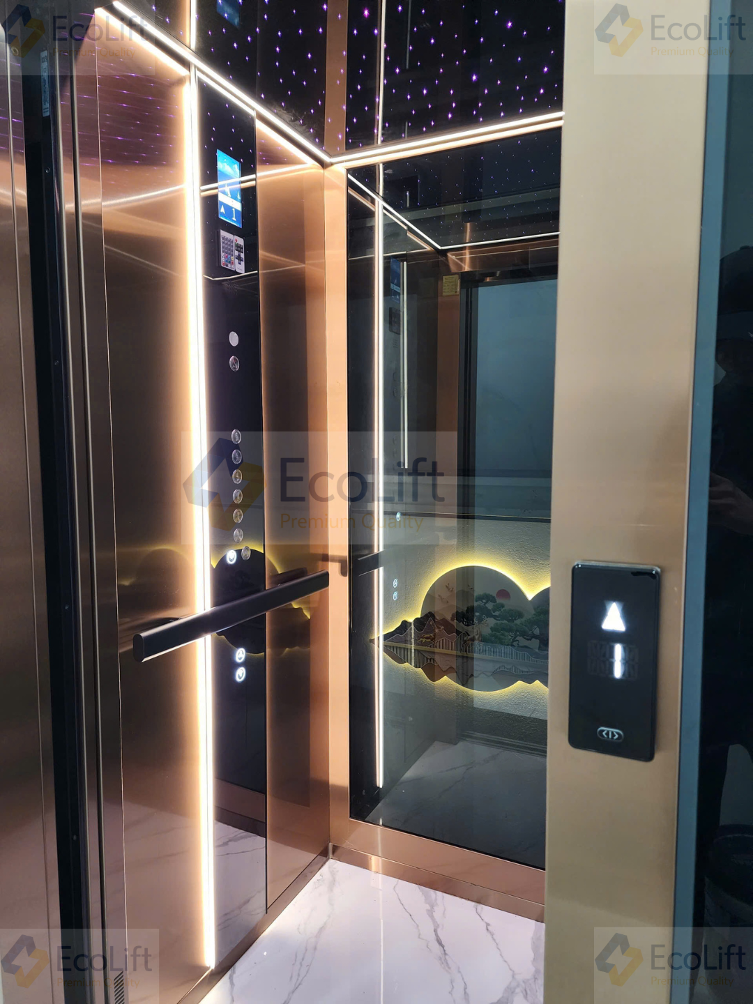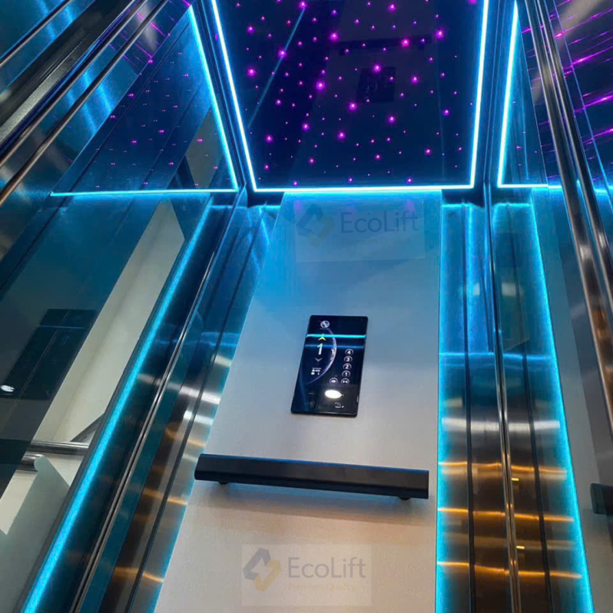 Ánh sáng tự nhiên có thể xuyên qua lớp kính, tạo nên hiệu ứng thị giác độc đáo, giúp thang máy không còn cảm giác kín bưng mà trở nên nhẹ nhàng, thanh thoát. Hệ thống đèn LED hiện đại bên trong cabin càng làm nổi bật vẻ đẹp lung linh, đẳng cấp.